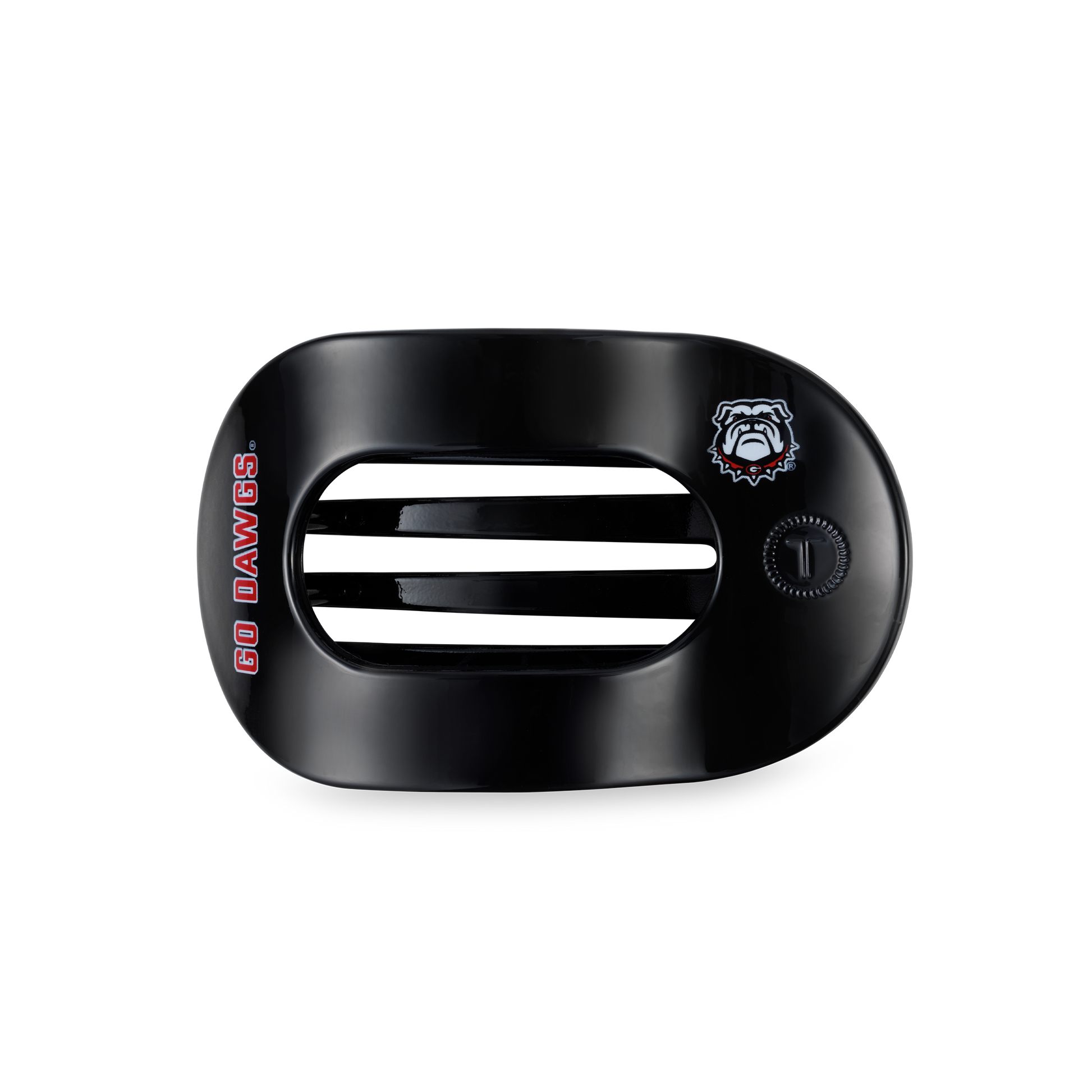 Lay flat and relax with the new TELETIES University of Georgia, Go Dawgs! Medium Flat Round Hair Clip in Black and Red. This hair clip is designed to allow you to lay back flat, do yoga, or sit comfortably in a seat with a headrest, and it is made with the same material that is nearly unbreakable. Shop your favorite University of Georgia hair accessories now! Go Dawgs!
