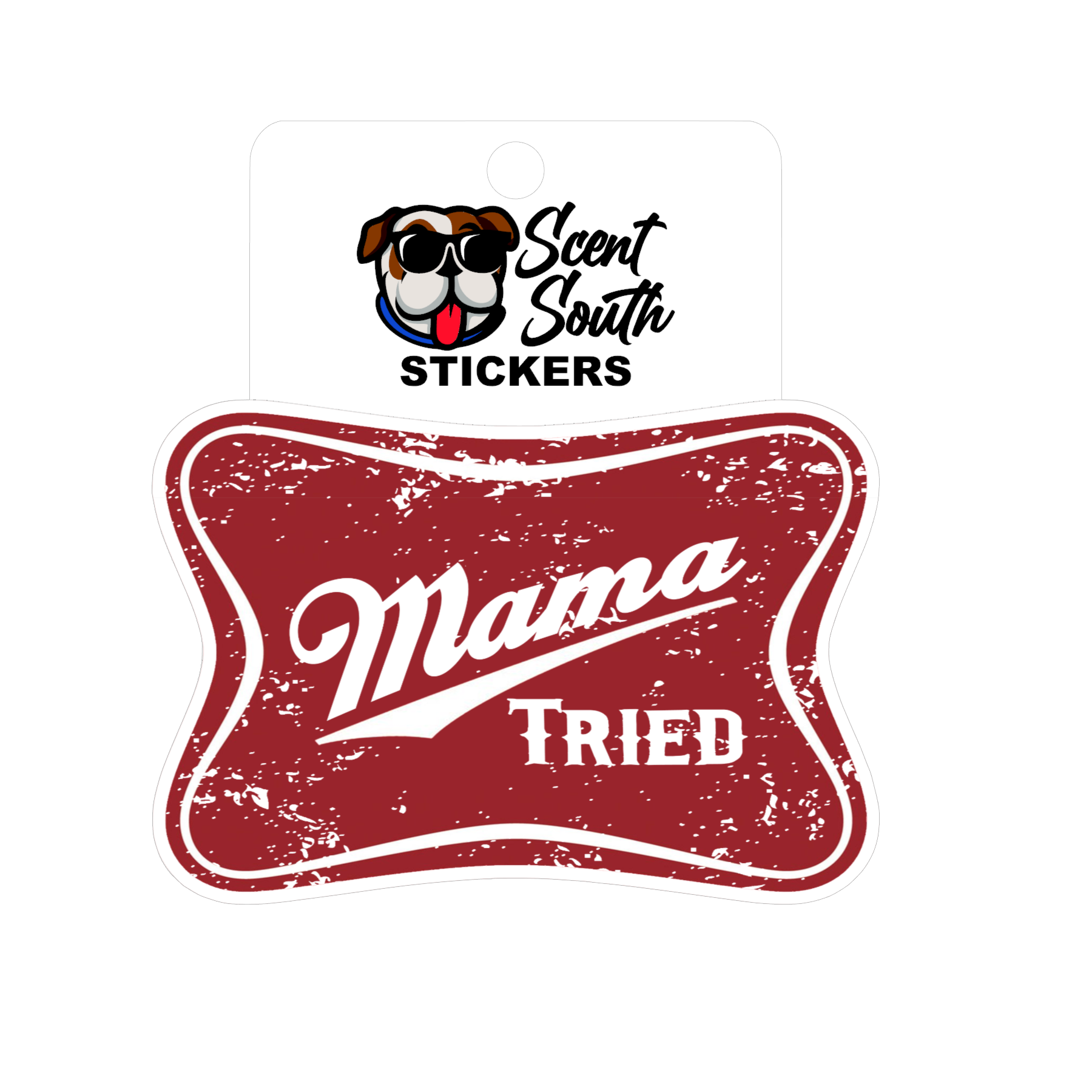 Our Mama Tried Red sticker from Scent South is a fun addition to any surface. It's more than just a sticker, it's a part of the Scent South brand. Founded by Jason Hudgins & Kyle Young, Scent South is a Southern inspired air freshener company. This sticker is a great way to show your support for the brand. Make it yours today!
